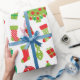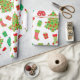 Retro Red Green Christmas Tree Stocking Gift Pattern Wrapping Paper.