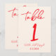 Modern and elegant whimsical red and cream wedding table numbers. As you see it features a fun cream background with red hand drawn script that matched the whole suite.