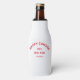 Happy Campers, Camp Crew, camping trip, personalised retro red bottle cooler. Personalise with the year of your camp trip and location. Perfect for adventurous friends or family as they embark on their happy campers trip or reunion camping weekend. Order matching bottle coolers for the whole camp crew. Designed to match our Happy Camper Retro Red & Vintage Black Collection.