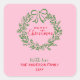 Retro Red Pink Hand Drawn Ribbon Wreath Christmas Square Sticker