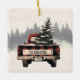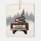 Retro Red Plaid Christmas Truck Custom Photo Ceramic Ornament