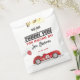 These eye-catching favour bags blend vintage charm with playful whimsy, featuring a beautifully illustrated retro race car in a feisty shade of dusty red.