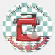 Super fun and colourful tile background with retro red stand mixer in watercolor style "from the kitchen of" stickers or "homemade by" labels for your gifts of foods, sweets, and treats.