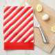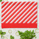 Retro Red White Diagonal Candy Stripes Pattern Tea Towel