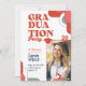 Channel your inner flower child and throw a groovy bash to celebrate your graduation! This retro-inspired invitation features a rounded corner photo space, perfect for showcasing your senior pics. With a vibrant palette of red, beige, and 70s-style colours, plus groovy fonts and a playful daisy illustration, this invitation is sure to set the tone for a far-out graduation party.