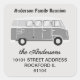 Family reunion name, name and address and retro travel van is featured on these cute square return address stickers. Save money with twenty 1.5" square stickers for envelope seal return address labels. Minimum purchase is only one sheet. Easily change the text using the Template provided. Use lower case for more space. See "About" for more information.