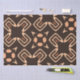 The product features a seamless, repeating pattern with a dark brown background. The design includes abstract, geometric shapes in light orange and a touch of dark orange. The elements consist of: