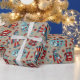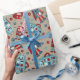 Illustrations of cute vintage robots in shades of red and blue along with some coordinating nuts are set against a tan background on this patterned wrapping paper. Add a retro sci-fi touch to any gift.