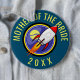 Sci fi retro rocket ship logo. Text is yellow on dusty blue and is customisable. This version is for longer titles. Make one for each member of the wedding party or create a memorable, lasting party favour.