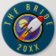 Sci fi retro rocket ship logo. Text is yellow on dusty blue and is customizable. Make one for each member of the wedding party or create a memorable, lasting party favor.