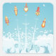 Retro Rocket Ship Launch Futuristic Space Art Square Sticker