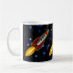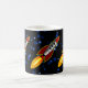 Three 1940s/50s retro styled space rockets blast their way into orbit, or maybe to the Moon or Mars.