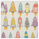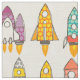retro rockets eggshell fabric