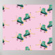 Pink Retro Vintage Roller Skate Seamless repeat pattern with pink background.
