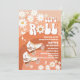 Celebrate in style with this retro roller skating birthday invitation featuring playful roller skates, daisies, and vibrant peach-orange tones. Perfect for a fun first birthday party, this design captures peace, love, and nostalgic charm. Bold fonts and whimsical accents make it stand out while providing all the essential event details. A unique and eye-catching invitation that sets the tone for a joyful celebration.