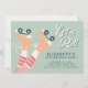 Cool sage green roller skating birthday party invitation for any age featuring "Let's Roll!" in a retro script and a retro-inspired illustration of pastel orange roller skates on a girl wearing striped tube socks. Add her name and birthday year in blue typography.