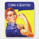Retro iconic Rosie the Riveter flexing her muscles and matched up with, "Strong is Beautiful!" text on this mousepad design!