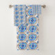 Retro Round Daisy Tile Pattern Blue White Bath Towel Set