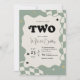 Retro Sage Green Checkered Groovy Two 2nd Birthday Invitation