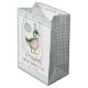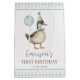 Featuring a delightful illustration of a charming duck in a bow tie and party hat, this gift bag is framed by a soft pastel green gingham border for a whimsical and rustic look.