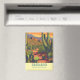 This classic fridge magnet features a retro style scenic view of Saguaro National Park in Pima County, Arizona. .