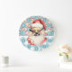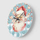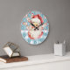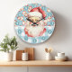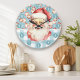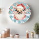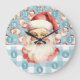 Retro Santa Claus Blue And White Plaid Christmas Large Clock