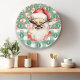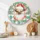 Retro Santa Claus Green And White Plaid Christmas Large Clock