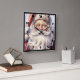 A clock with a vintage style illustration. A portrait of Santa with his big white beard wearing his classic traditional red Santa hat.