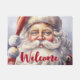 A welcome doormat with a vintage style illustration. A portrait of Santa with his big white beard wearing his classic traditional red Santa hat.