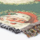 A portrait of Santa is repeated on a forest green background on this delightful Holiday pattern blanket. Santa's twinkling blue eyes sparkle underneath his traditional red hat and behind his full white beard. Pine needles frame the portrait. Beautiful and useful for the Holiday Season!