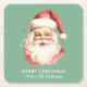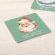 Retro Santa Green Personalised Name Christmas Square Paper Coaster