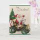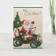 Vintage / Retro Christmas greeting card. Adorable Santa Claus delivering Christmas gifts in a Model T. It's Christmas!