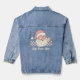 Women's Christmas Denim Jacket with pink retro Santa in the pink glasses on the chequered background, cute and funny design for the Holiday season. Easily personalise the text or leave it blank - Kate Eden Art