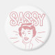 Retro girly attitude t-shirt & gifts. Design features an illustration of a vintage 1950s style woman winking, and reads, "Sassy". Perfect for gals who love funny retro humour and style.