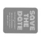 Retro Save the Date Magnet in grey and white with a funky modern typography design. This trendy and stylish save the date magnet is easy to customise with your wedding details. For more customisation options, click on the Customise It button.