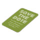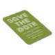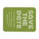 Retro Save the Date Magnet in olive green and white with a funky modern typography design. This trendy and stylish save the date magnet is easy to customise with your wedding details. For more customisation options, click on the Customise It button.