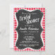 Retro Scarlet Red Gingham; Chalkboard look Invitation