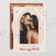 Surprise your loved ones with this modern, stylish Save the Date card, featuring terracotta boho arch, retro script, 2 photos and custom text of your choice. Easily add your own details by clicking on the "personalise" option.