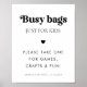 Encourage kids to have fun with this busy bags poster, featuring retro script, black heart and your custom text. Easily add your own details by clicking on the "personalise" option.