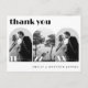 This beautiful modern photo arch wedding thank you card is an elegant and chic way to thank your loved ones for being a part of your special day. The modern design with a vintage twist features a photo collage of three photographs within arched frames, placing the text in the elegant bold retro typography in a minimalistic black and grey colour on the white background. The reverse contains the space for your custom message. Make it yours by using the "customise" button and replacing the template with your images and the text with your information.