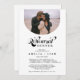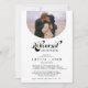 Let's celebrate our favourite couple's rehearsal night before the big day with this classic and elegant retro vintage calligraphy Rehearsal Dinner Script in black and white with an arched shape photo at the top. When retro meets modern touch.