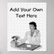 Created from a vintage illustration of a secretary sitting at a desk holding a business card and ready to make a phone call. Customise it with your own text. Retro cool!
