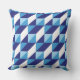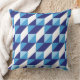 Retro Shades of Blue Geometric Triangle Abstract Cushion