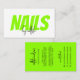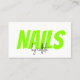 This retro and simple business card is perfect for any professional. It features contemporary and artsy black cursive font and neon green blocky font on top of a minimalist white background; the perfect design to attract potential customers. It's a great choice for nail artists.