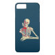Happy smiling skeleton with his bony hand resting on his chin, done in retro colours.