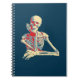 Retro colours. Happy smiling skeleton with his bony hand resting on his chin.