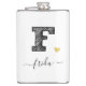 The flask itself is fine. It’s a cheap flask, obviously bought in bulk, however am prepared to overlook that. Given that it is a personalized item, I would have liked to have seen gift boxing instead of the generic packaging. Terrible printing, and/or quality. It’s a cheap, tacky vinyl. It is not cut straight and is also applied in a way that it is overhanging the bottom, causing the glue to catch on items and it will eventually roll and tear, damaging the wrap.