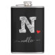 The flask itself is fine. It’s a cheap flask, obviously bought in bulk, however am prepared to overlook that. Given that it is a personalized item, I would have liked to have seen gift boxing instead of the generic packaging. Terrible printing, and/or quality. It’s a cheap, tacky vinyl. It is not cut straight and is also applied in a way that it is overhanging the bottom, causing the glue to catch on items and it will eventually roll and tear, damaging the wrap.