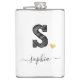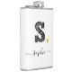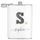 The flask itself is fine. It’s a cheap flask, obviously bought in bulk, however am prepared to overlook that. Given that it is a personalized item, I would have liked to have seen gift boxing instead of the generic packaging. Terrible printing, and/or quality. It’s a cheap, tacky vinyl. It is not cut straight and is also applied in a way that it is overhanging the bottom, causing the glue to catch on items and it will eventually roll and tear, damaging the wrap.