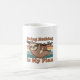 A minimalist white mug with a funny retro sloth embracing lazy living.